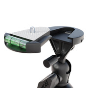 Replacement 1/4"-20 tripod shoe with built-in level for stable, precise mounting on compatible tripod mounts.