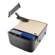 Three smaller storage areas are situated at the back for office essentials, such as USB sticks, charging cables, and even the humble pen, making it the ideal car desk for professionals who appreciate a tidy workspace, even in their car.