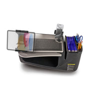 The GripMaster Car Desk is ergonomically shaped to fit the passenger seat of most cars and trucks and secures in place with the seatbelt for a steady, no-shift workspace. Its pull-out, non-skid desk surface provides a reliable area for writing reports, reviewing paperwork, or working on a laptop, while integrated compartments keep files, tools, and accessories neatly organized and within reach.