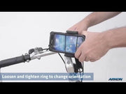 Arkon's SM434 bike or motorcycle handlebar phone holder mount holds all large smartphones, including Apple Max, iPhone 13, iPhone 13 mini, iPhone 12 Pro Max, iPhone 12 Pro, iPhone 12, iPhone 12 mini, iPhone 11 Pro Max, iPhone 11 Pro, iPhone 11, iPhone XS Max, iPhone XS, iPhone XR, and iPhone X, Samsung Galaxy Z Flip, Galaxy S21 Ultra, Galaxy S21 and S20, Galaxy S10, A11, A12, A32, A42, A52, A71, Galaxy XCover, FieldPro, Galaxy Note 20 and Note 10, Google Pixel 6 and 5, Kyocera DuraForce Pro, Sonim XP8, Motorola Moto G, and LG G7, G6, and G5. This mount includes Arkon's Mega Grip one-touch push-button phone holder, and a Bicycle/Motorcycle Quick-Release Zip-Tie Style Handlebar Mount with Elastic Secure Strap. The universal design of the Mega Grip phone holder accommodates any smartphone having up to 3.5 inches in width, making it compatible even when used with a large protective case or skin. The mount fits on handlebars and roll bars measuring from 15mm to 50mm in diameter, and the zip-tie style design requires no tools to install. SM434 is great for treadmills, ellipticals, or other exercise equipment in addition to bike or motorcycle handlebars. The mount's swivel ball adapter head rotates 360 degrees, providing the ultimate flexibility in viewing the smartphone from any angle. The secure elastic strap wraps around the cell phone to provide added stability and protection while riding.