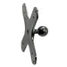 For mounting your television or monitor, begin by securing the X-shaped adapter to your VESA-compatible display using recommended M4 screws (sold separately). Next, attach the 25mm ball end to an Arkon heavy-duty or compatible 25mm shaft or pedestal.