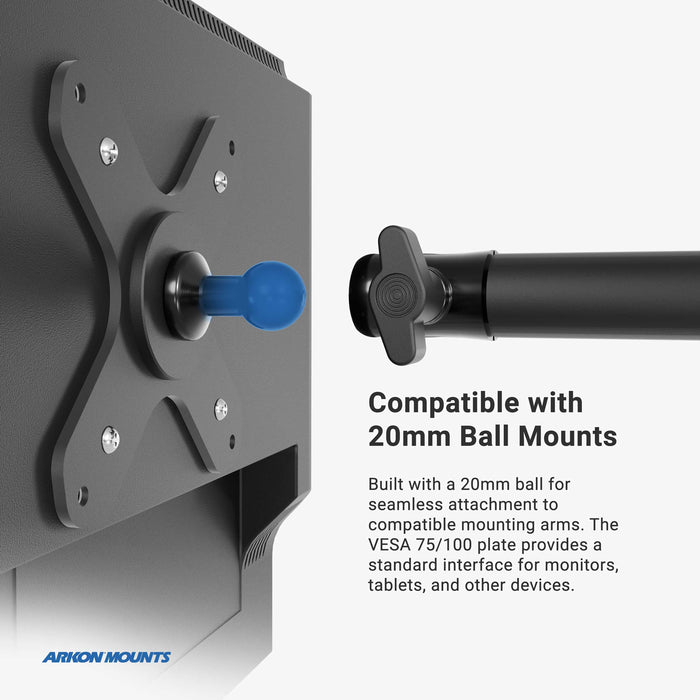 Compatible with any monitor, display, or POS system that utilizes a VESA 75 or VESA 100 mounting pattern.