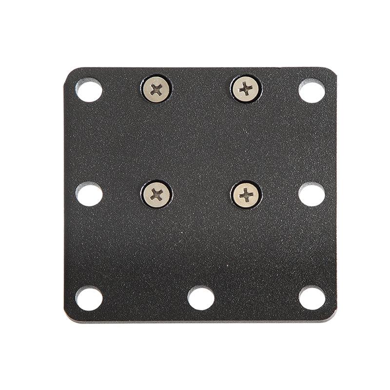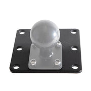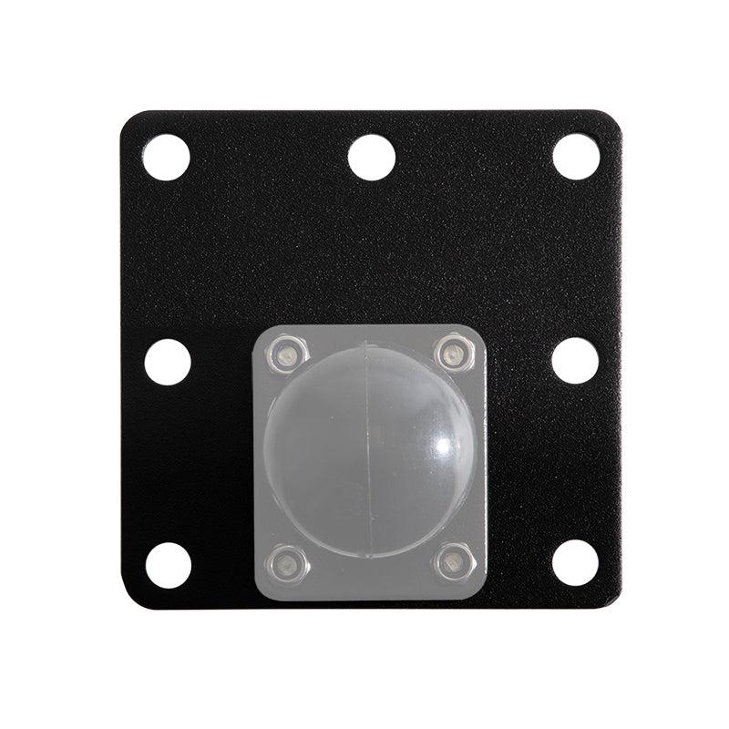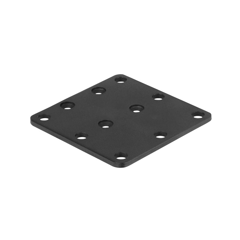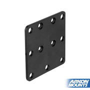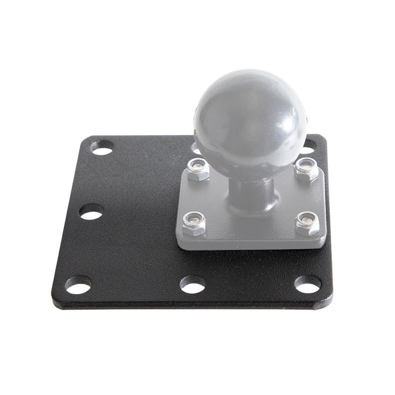 The mounting plate is intended to convert any AMPS ball adapter to VESA 75 pattern. Utilize any AMPS ball adapter with this plate to mount any monitor or device with a VESA 75 pattern. Features off-center recessed holes in the 4-Hole AMPS pattern. The plate is a powder coated metal square that has 11 predrilled holes.